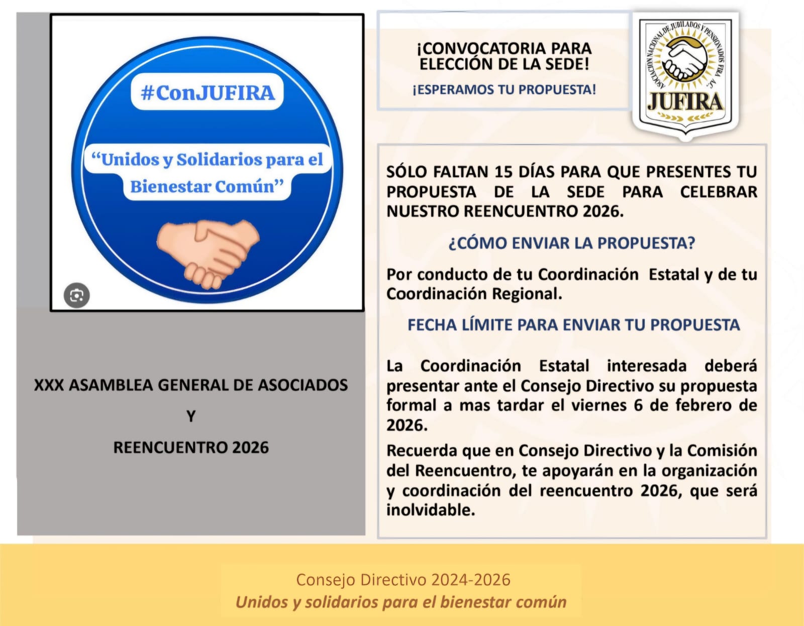 CONVOCATORIA PARA ELECCIÓN DE LA SEDE DE LA XXX ASAMBLEA Y REENCUENTRO 2026.CONVOCATORIA PARA ELECCIÓN DE LA SEDE DE LA XXX ASAMBLEA Y REENCUENTRO 2026. 2026