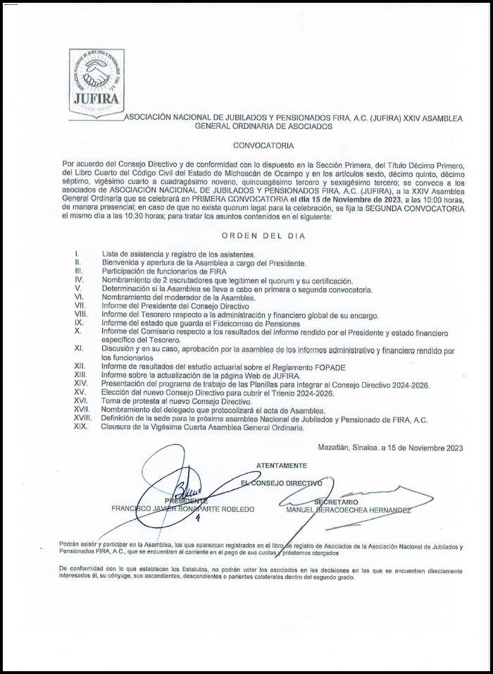 ASAMBLEA GENERAL ORDINARIA XXIV Mazatlán, Sinaloa a 15 de Noviembre 2023. Dar clic sobre el documento que desees leer: Dar PLAY sobre el Vídeo que desees ver: II .- Bienvenida y apertura de la asamblea a cargo del Presidente.Francisco Javier Bonaparte Robledo Mensaje FIRARoberto Lavalley Villanueva Servicio Médico y …Moisés Ríos Juárez VII .- Informe […]