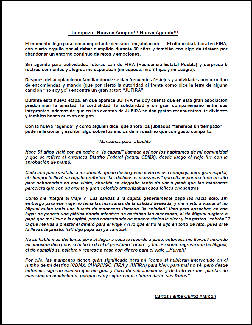 El pasado 2 de julio, miembros del Consejo Directivo de JUFIRA visitaron a nuestros compañeros jubilados del Estado de México en donde estuvieron presentes el Coordinador Regional del Sur, el Coordinador Estatal de dicha plaza y conectados de forma remota algunos Coordinadores Estatales de dicha Regional.