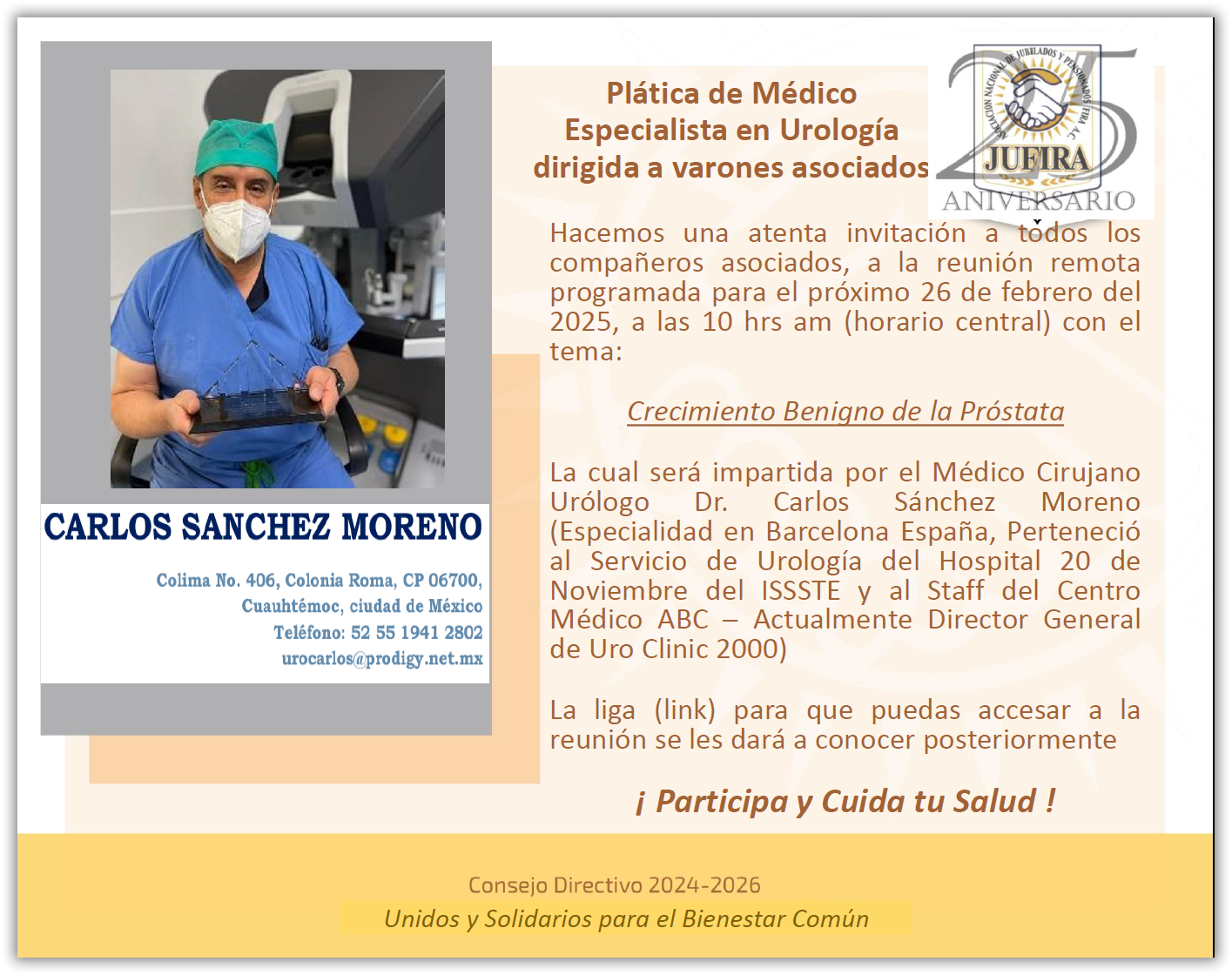 Plática de Médico Especialista en Urología dirigida a varones asociados
