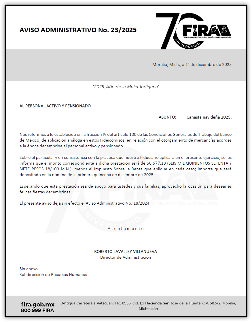 Aviso Administrativo 23/2025: “Canasta navideña 2025”
