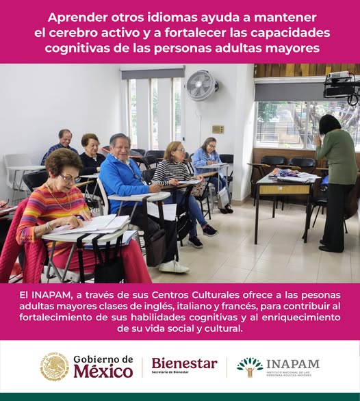 Los #CentrosCulturales #INAPAM ofrecen a las #PersonasAdultasMayores clases de idiomas #Inglés #Italiano y #Francés para contribuir al fortalecimiento de sus #Habilidades #Cognitivas y al #Enriquecimiento de su #Vida #Social y #Cultural. Aprender-otros-idiomas-ayuda-a-mantener-el-cerebro-activo-y-a-fortalecer-las-capacidades-cognitivas-de-las-personas-adultas-mayores centros-culturales-inapam