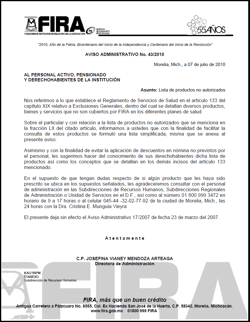 AVISO ADMINISTRATIVO No. 43/2010PARA PERSONAL PENSIONADO O JUBILADO DEL FONDO Lista de productos no autorizados. 2025