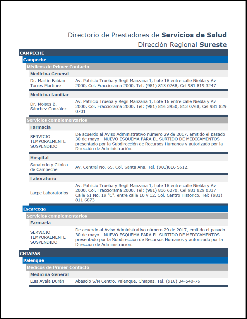 DIRECTORIO DE PRESTADORES DE SERVICIOS DE SALUD – Sureste
